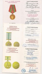 3 удостоверения на женщину,состояние отличное.Награждено медалью в честь 65летия-200.000 человек,по России возможна продажа с этой медалью(медаль в люксе,в коробке),другие страны только документы.Предлагайте......ВОЗМОЖЕН ОБМЕН НА РОМБ(Ы)
