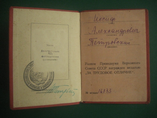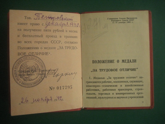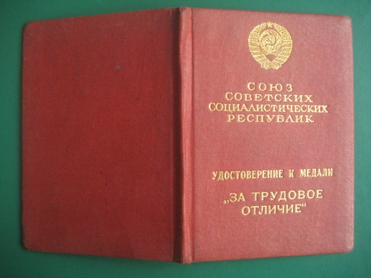 Индивидуальный док .Уд. к медали "ЗА ТРУД ОТЛИЧИЕ" 1940г.