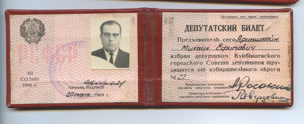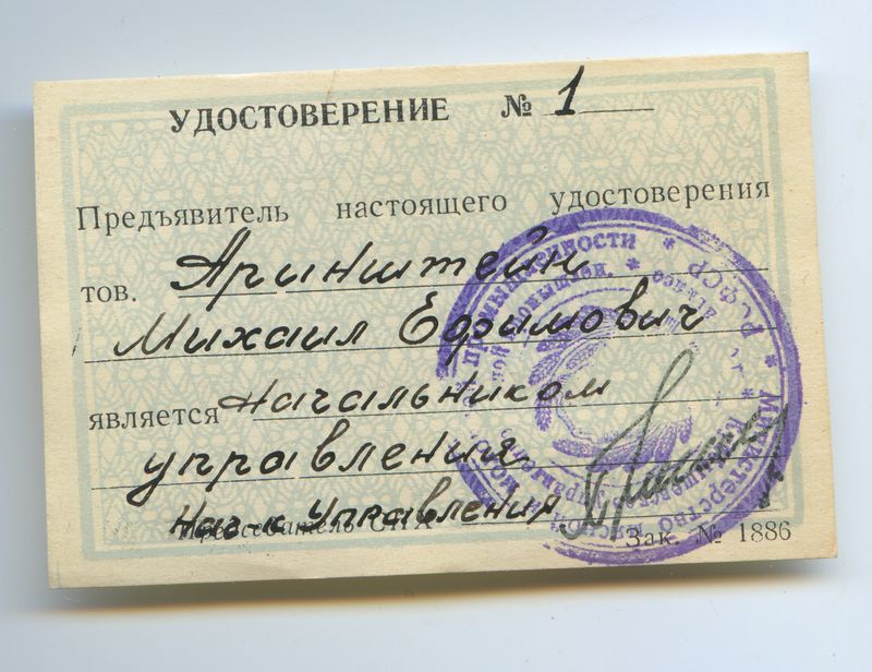 Документа на знак нет,но есть удостоверения.В последсвии стал начальнико мясомолочной промышленности Куйбышевской области.