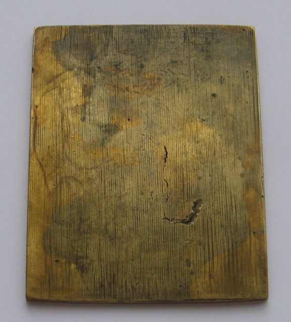 Предлагаем. С эмалями - 9,3 см на 11,6 (тяжелая и толстая). Другая - 8.8 на 11.