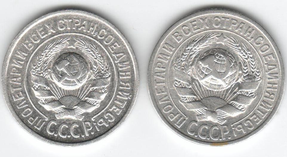 2 15-тикопеечные монеты 1925г