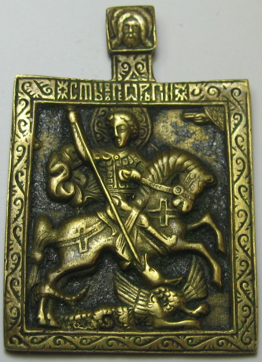 Тёмное что такое - не знаю, может быть остатки эмали. Размер без оглавия - 53 на 48. Куплена в этом году у местных жителей на европейском севере России.