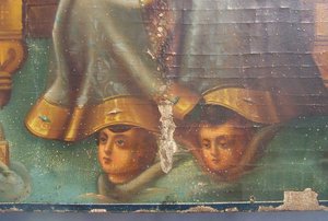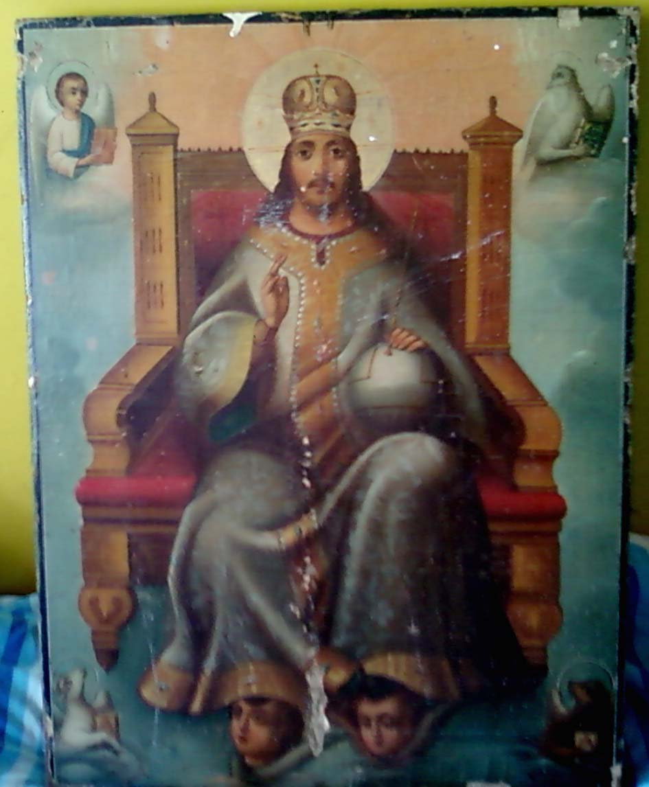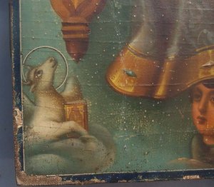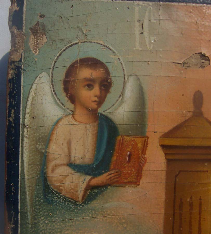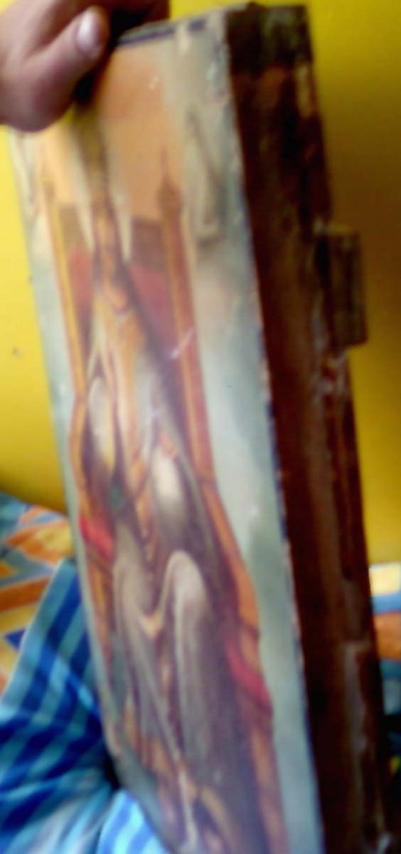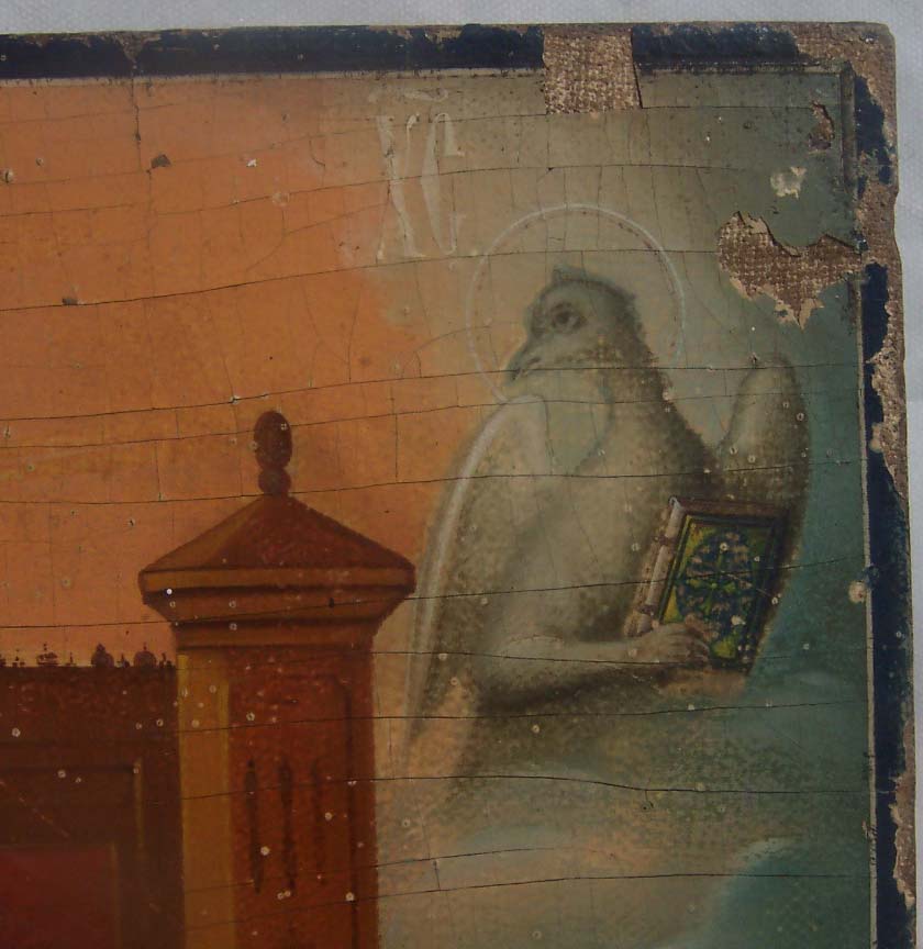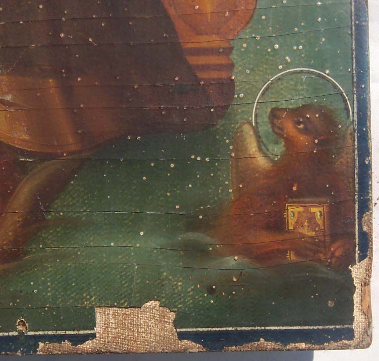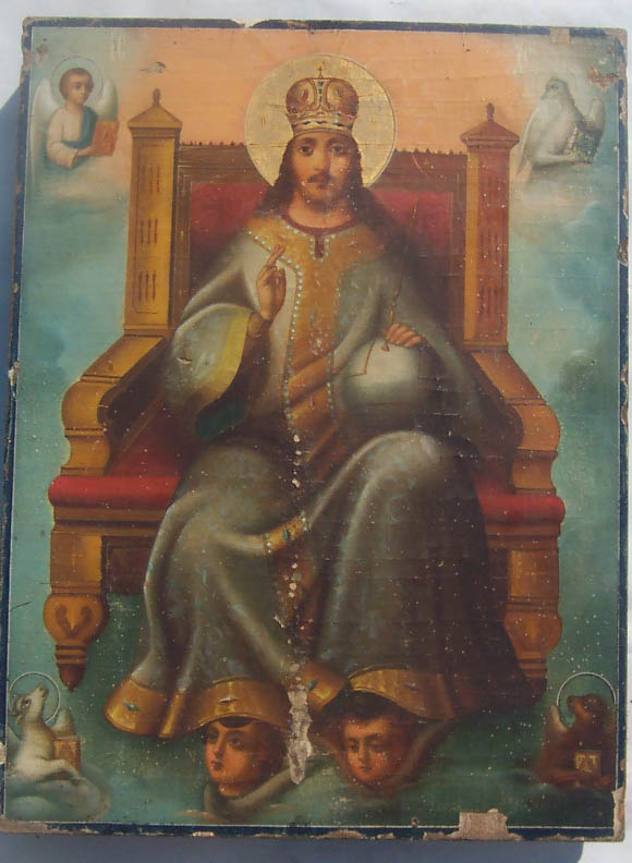 Предлагаю икону "Спас на троне с символами апостолов-евангелистов" в довольно хорошем состоянии,размер 60см на 40см,толщина - 4см.