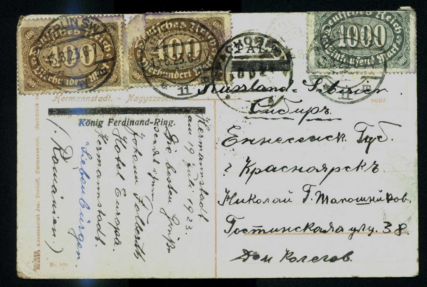 Открытка прошла почту в 1923 году ,это понятно по штампам. Подскажите по маркам редкие или обычные,Откуда открытка ? И не могу понять , что на ней написано Надо перевести на понятный руссий. По легенде эта открытка одного из родственников из эмиграции.( не моего)