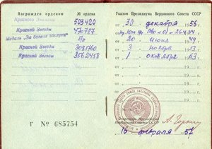 Есть учётка, наградного нету (сказали получить практически не реально).... человек, который пробивал сказал, что третья Кр. ЗВ. указ за Кубу (гарантировать не могу, но думаю кому интересно это проверит)!