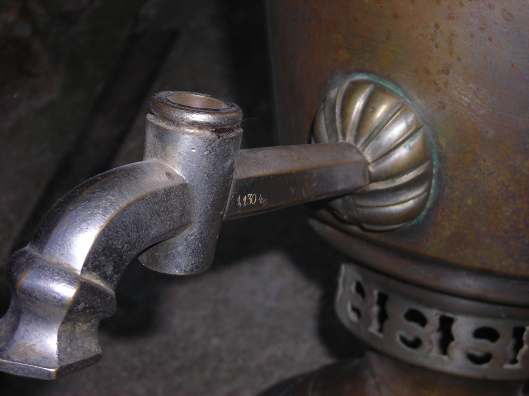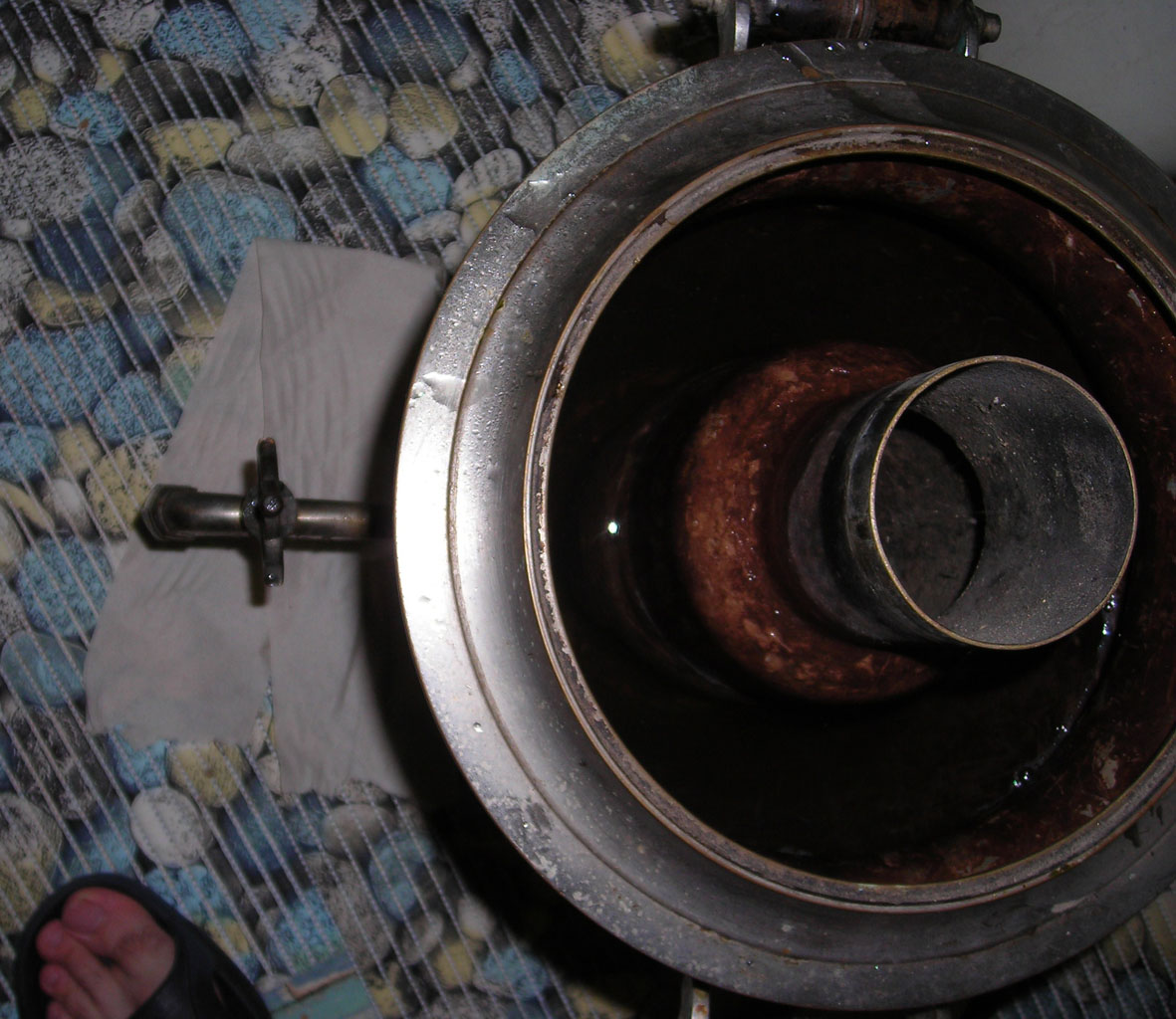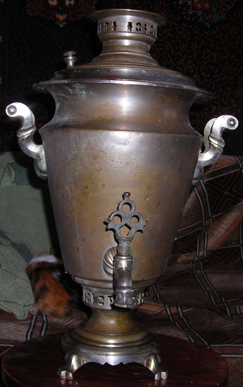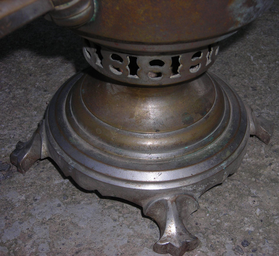 Самовар классный, смотрится так монументально... Вмещает в себя пол-ведра воды, не течёт, всё целое, без вмятин, поддувало есть, заслонка, ручки родные, краника нет. Думаю он годков 20-х... латунь . Продам срочно, мпц 150 долл.