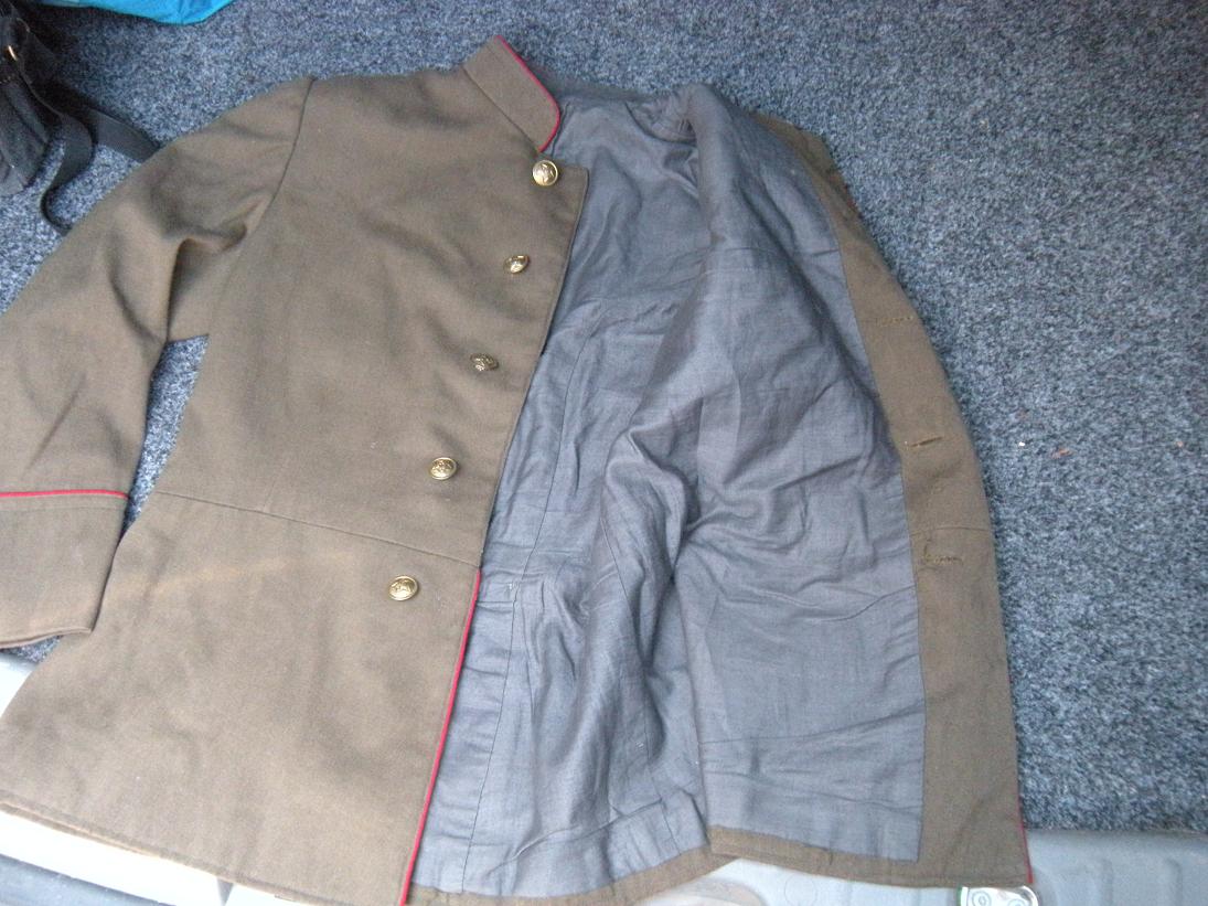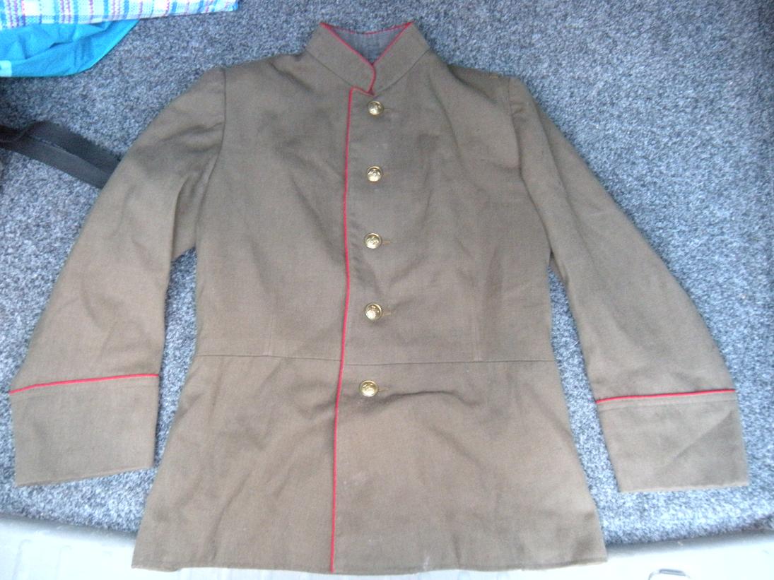 Мундир однобортный, с отрезным лифом, застегивается левым бортом на пять больших пуговиц. Воротник жесткий, стоячий, застегивающийся на два-три крючка и петли. Верхний край и концы воротника обшиты кантом................