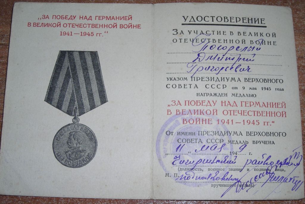 Орденской нет, пробивки нет, но так пришло от родственников