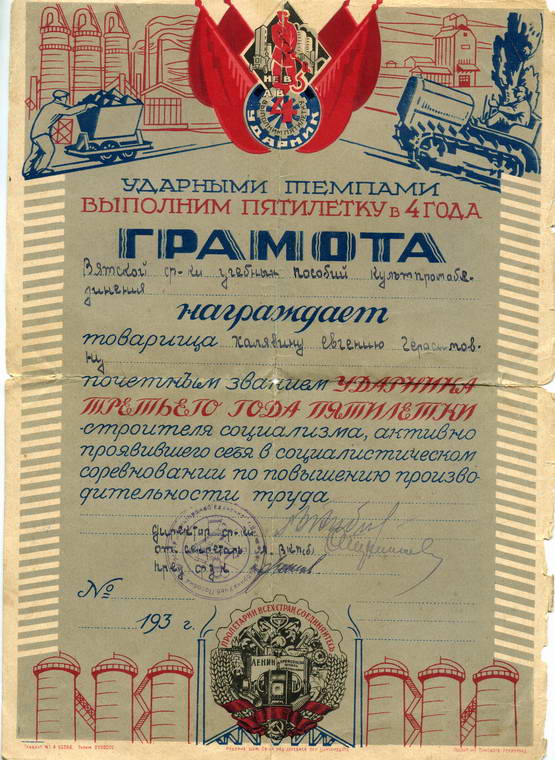 Вот такая грамота, состояние на скане (была сложена в четверо).