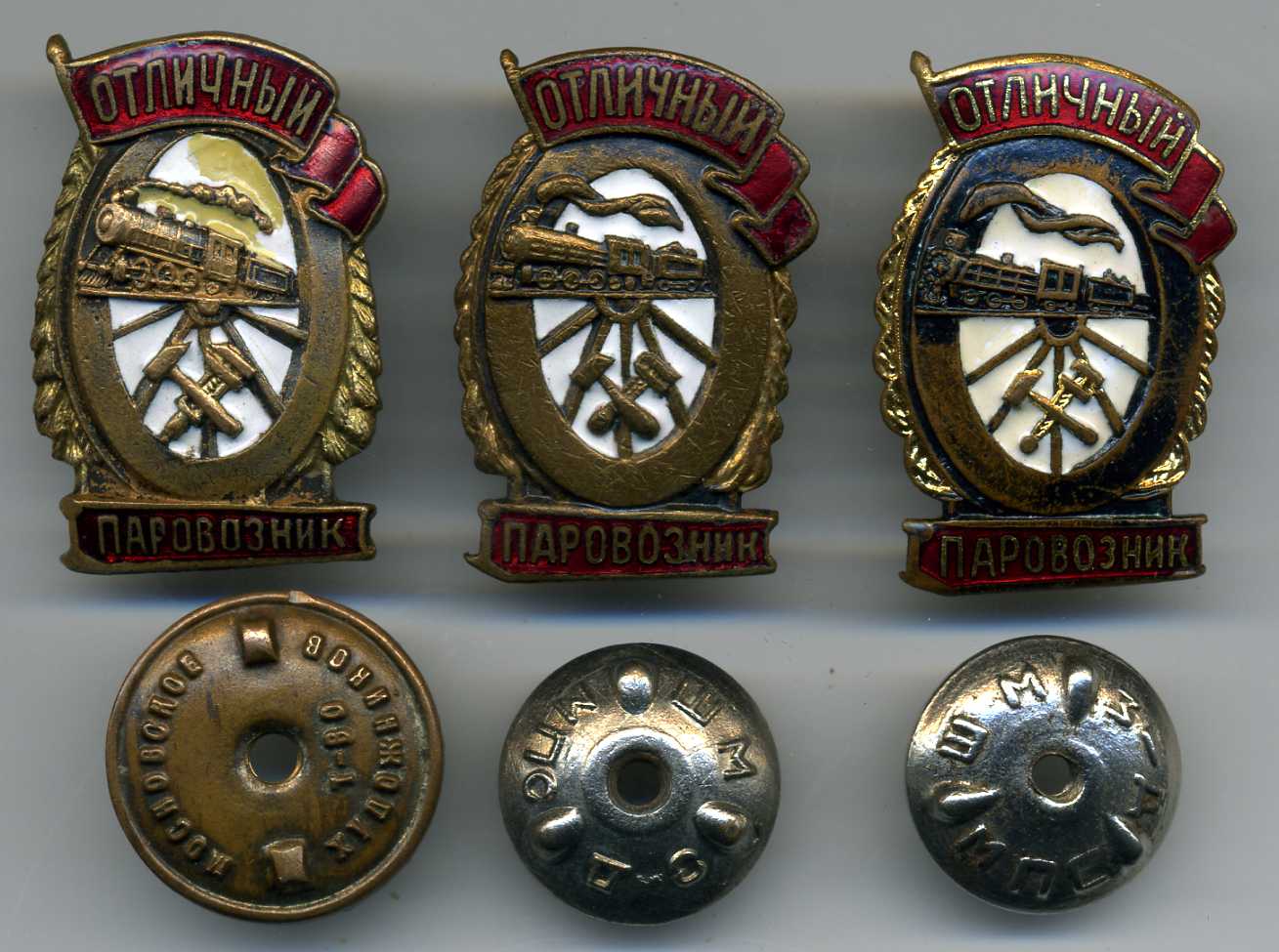 Состояние на сканах. У левого, похоже, подмазана белая эмаль и неродная гайка. Два других в хорошем состоянии.