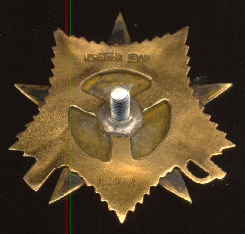 trasser писал(а):Знак хорошо ношен,и об этом говорят остатки чернения на сабле и винтовке и потёртости покрытия на СиМе.