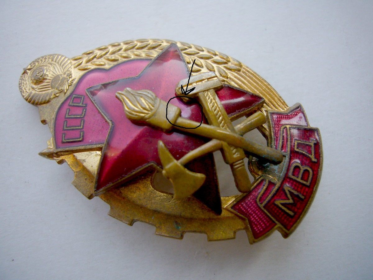 Медаль в идеале, не ношеная. На знаке есть круглая трещина, эмаль не выбита, на фото отмечено место, фотоаппарат не передаёт. Предлагайте
