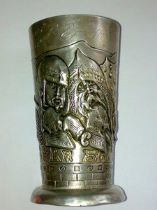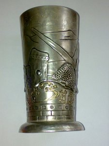 Помогите пожалуйста оценить кубок!мастер:Тарасов Михаил Яковлевич,Москва.Серебро 84 пробы.Высота:14,5 см.Вес:200 грамм.Из серии "Богатырская застава".На кубке вырезан погон и надпись : "Штабс-капитану М.Р. ........скому (к сожалению стерта фамилия)Командир и товарищи-офицеры 3-го Заамурского жезнодорожного полка".Подобный кубок есть в аверсе №5.стр.91 рис.135.этого же мастера.