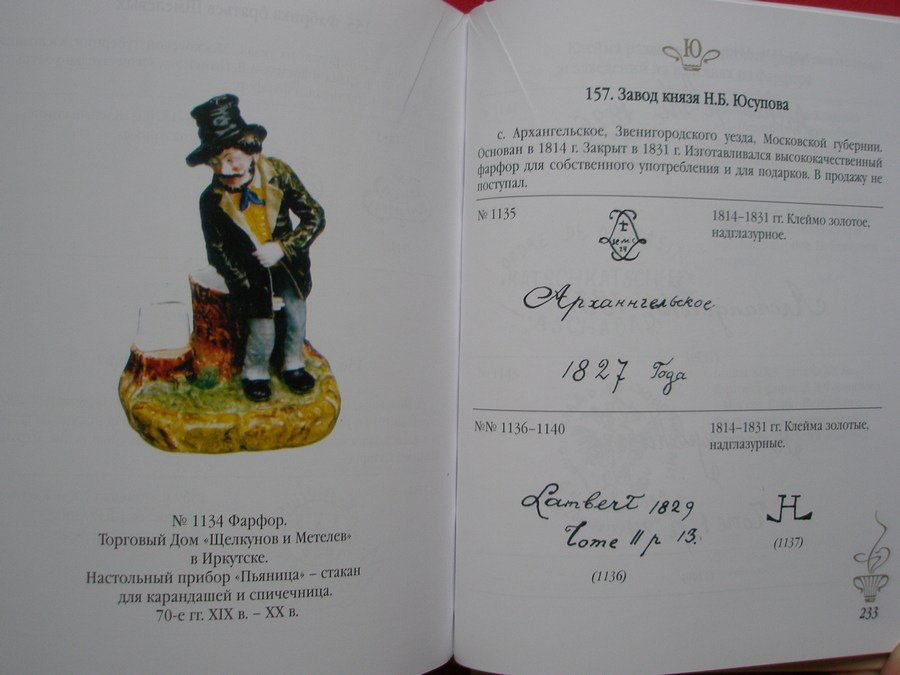 В каталоге изображено и описано 1242 клейма фарфоровых заводов Российской Империи и часных мастеров.