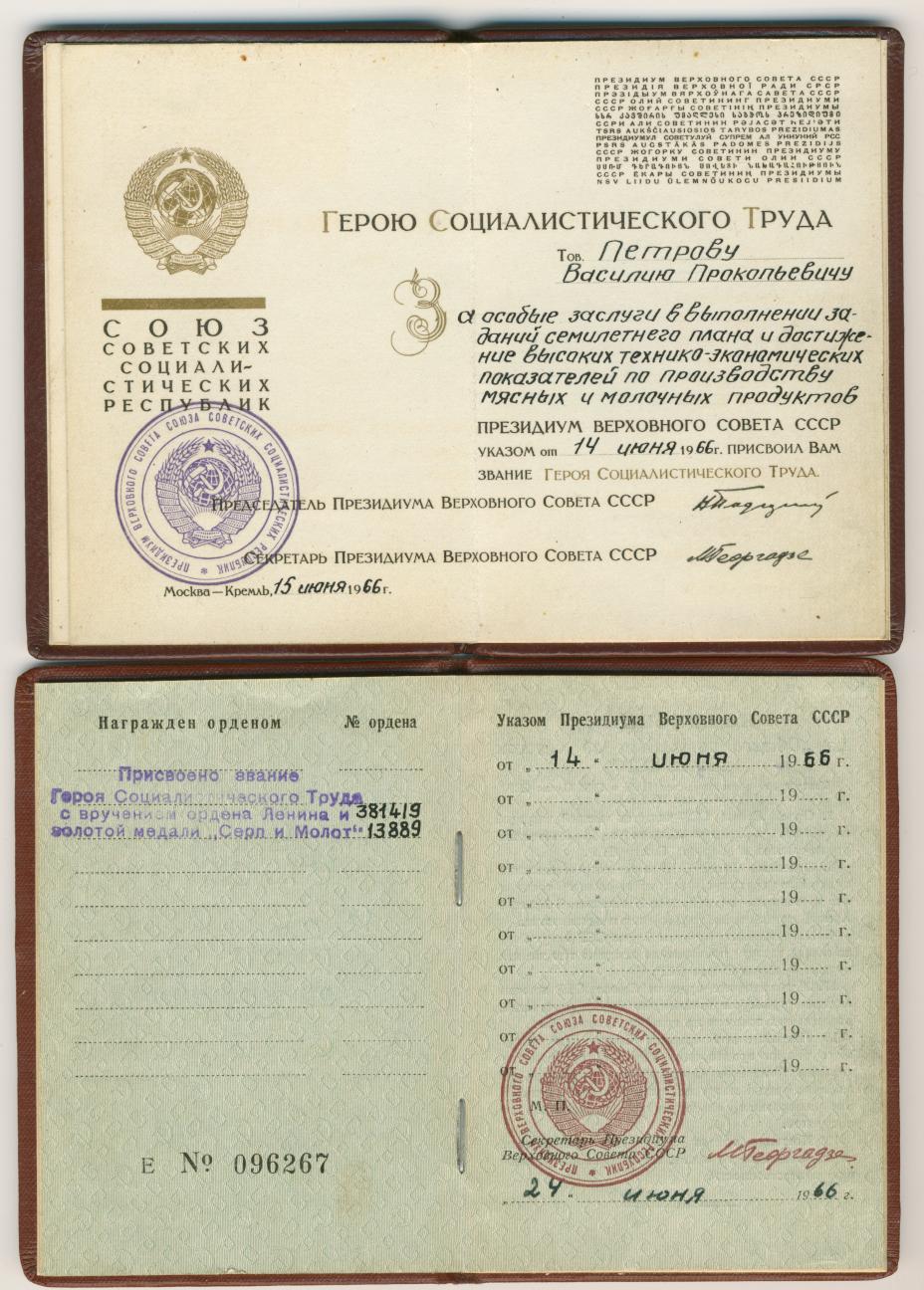 Медали Серп и Молот, За Трудовую Доблесть, За Трудовое Отличие, За Доблестный Труд в Великой Отечественной Войне,За Восстановление Предприятий Чёрной Металлургии Юга, За Восстановление Угольных Шахт Донбасса, За Освоение Целинных Земель, За Строительство БАМ, За Преобразование Нечерноземья РСФСР, За Освоение Недр и Развитие Нефтегазового Комплекса Западной Сибири, Ветеран Труда