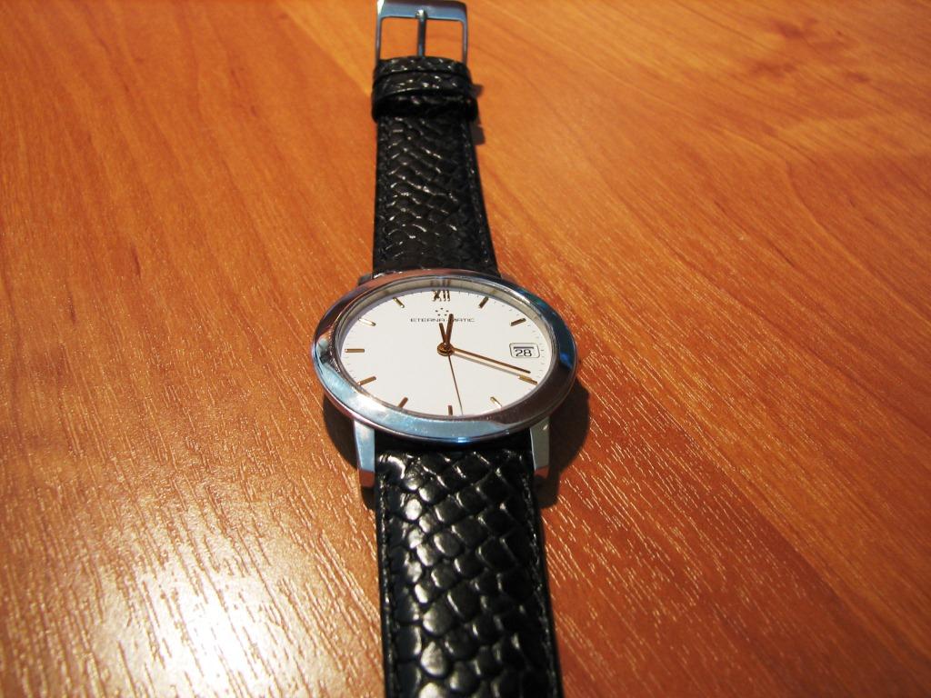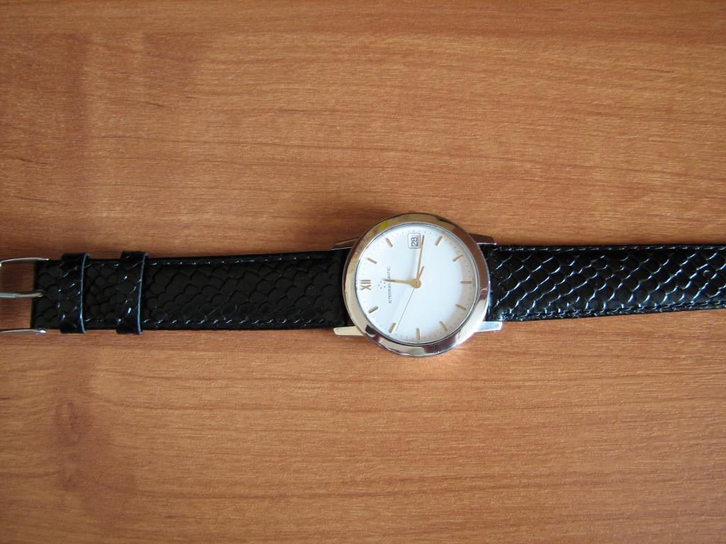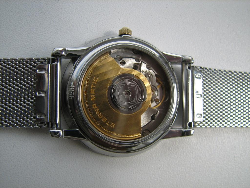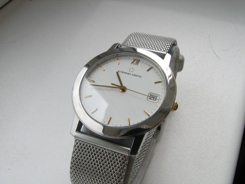 Продаются часы Eterna-matic 3400.41 . Корпус сталь, на стальном плетеном браслете. Были выпущены в начале 90х годов. Механизм автоматический ЕТА-2892-2 . Заводная головка не оригинальная, но подобрана идентичная по форме и цвету. Диаметр корпуса 34 мм, расстояние между дужками 18 мм. Браслет регулируется на руку любого размера. В комплекте только часы – коробки и документов нет.
