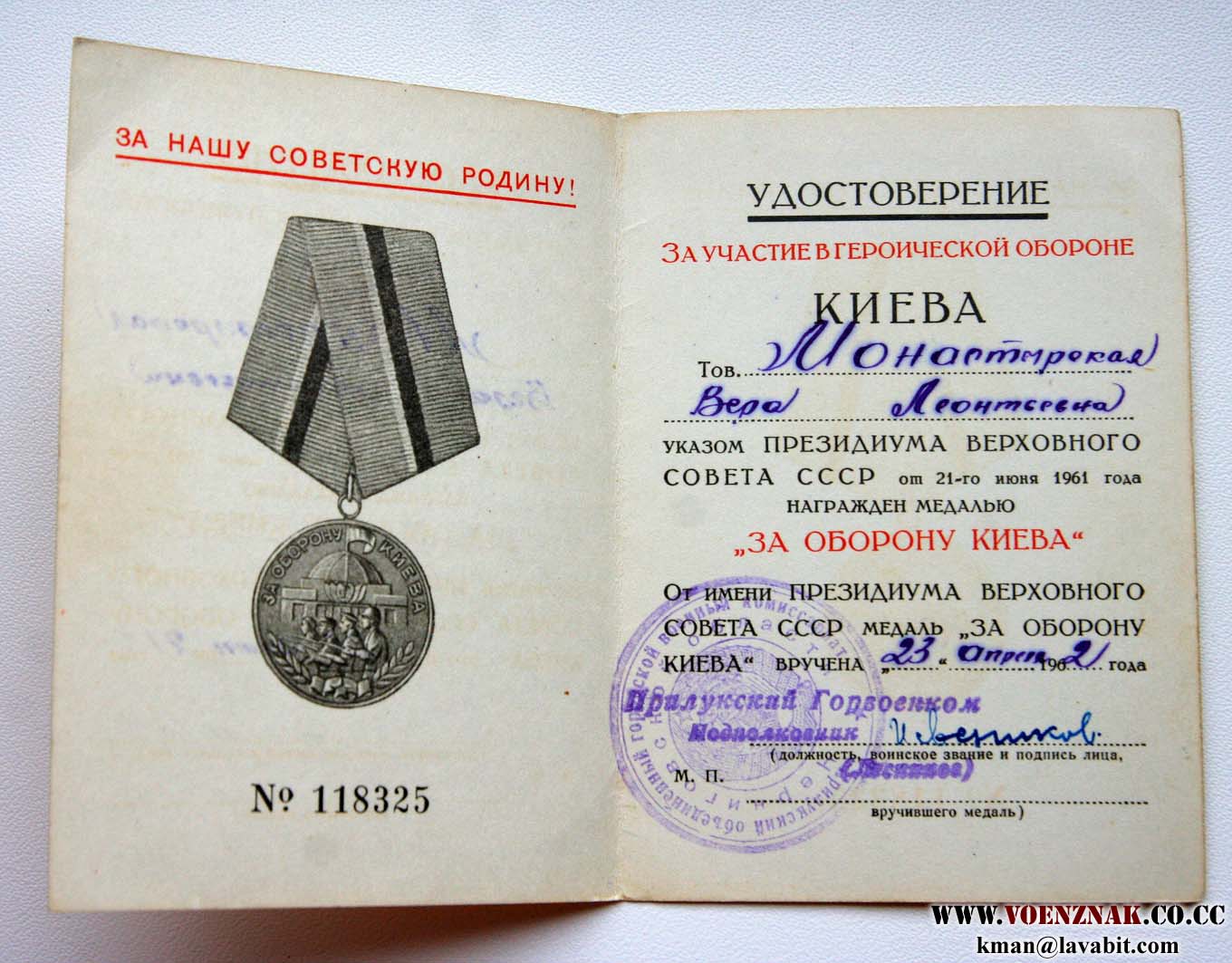Док"За оборону Киева" на ЖЕНЩИНУ!