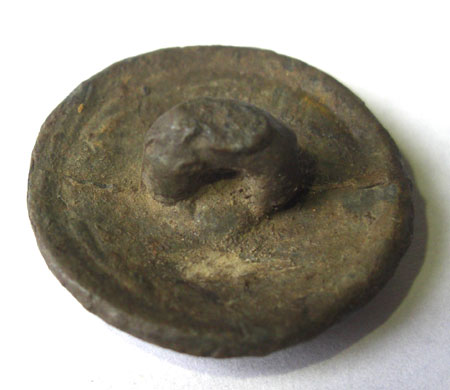 Интересно, что пуговица оловянная, но офицерского размера- 25 мм