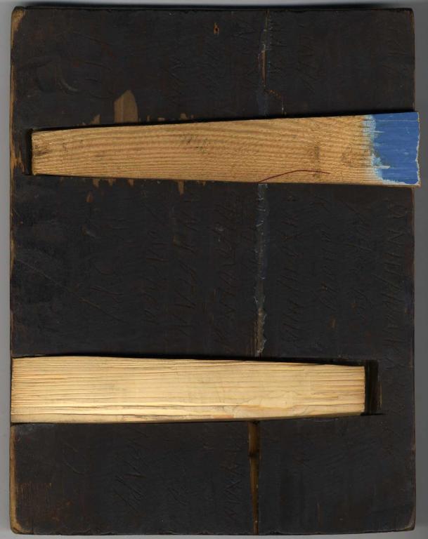 Размер 25х30,5, на потали. Несмотря на то, что расколота, потерь немного. Шпонки вставлены кем-то до меня. Приклеены эпоксидным клеем.
