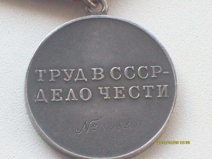 Медали Серп и Молот, За Трудовую Доблесть, За Трудовое Отличие, За Доблестный Труд в Великой Отечественной Войне,За Восстановление Предприятий Чёрной Металлургии Юга, За Восстановление Угольных Шахт Донбасса, За Освоение Целинных Земель, За Строительство БАМ, За Преобразование Нечерноземья РСФСР, За Освоение Недр и Развитие Нефтегазового Комплекса Западной Сибири, Ветеран Труда