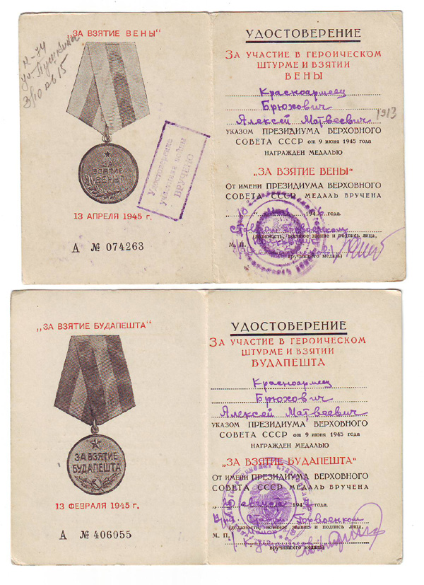 4. За взятие Вены - Брюхович А.М. - литера "А" - 1946 г.