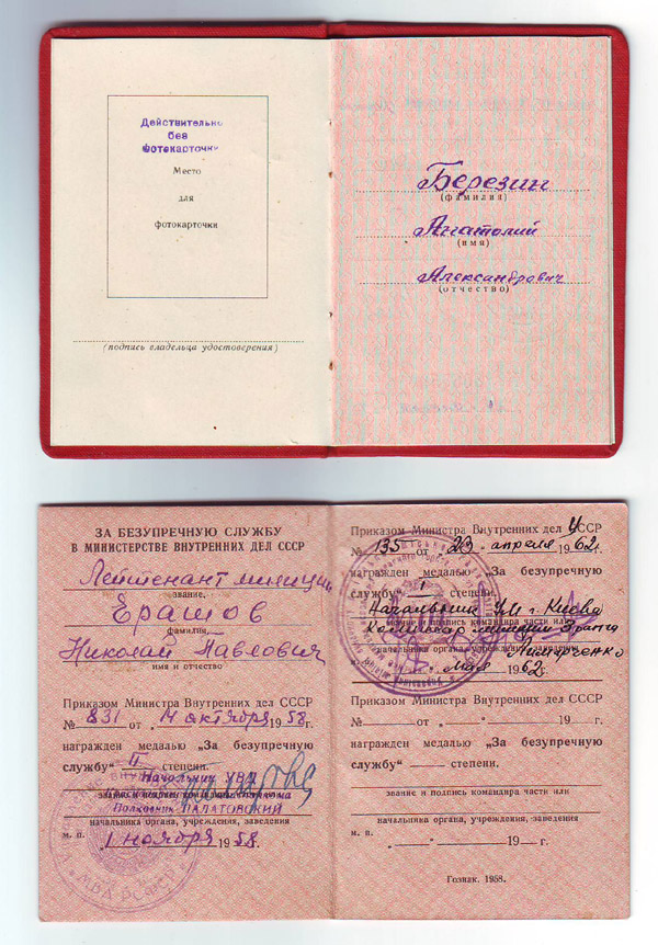 8. За безупречную службу - Ерашов Н.П. - 2 ст. 1958 г. и 1 ст. 1962 г.