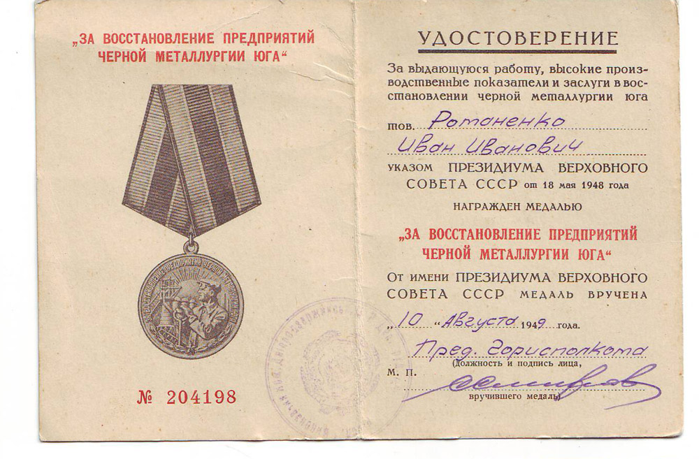 2. За восстановление предприятий черной металлургии юга - 10.08.1946 г.