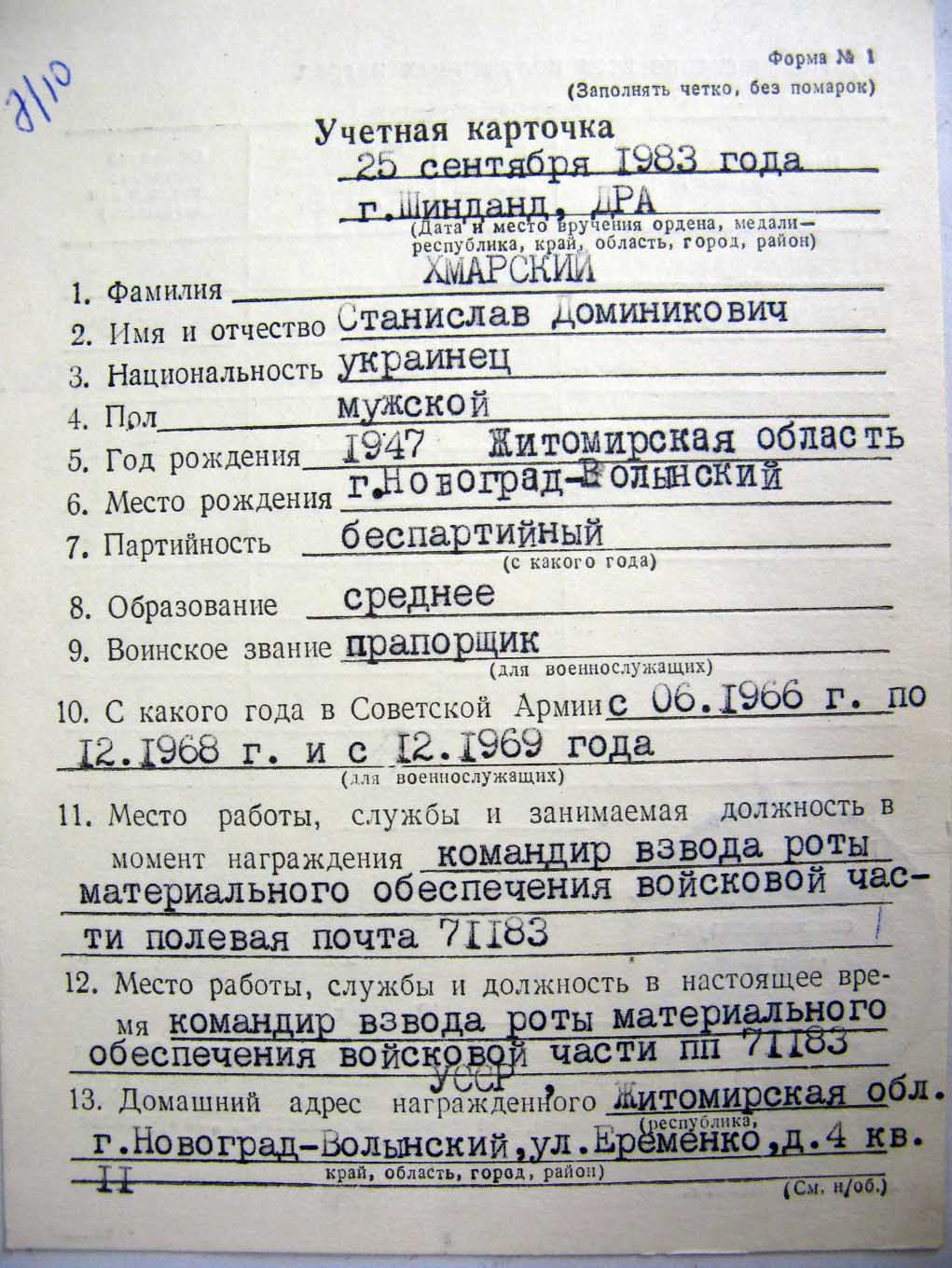 Комплект За отвагу, От благодарного афганского народа и другие