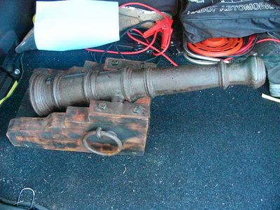 размер самой пушки около 40 см. вес не знаю. все деревяшки-новодельные. пушка в исправном состоянии-патронов нет