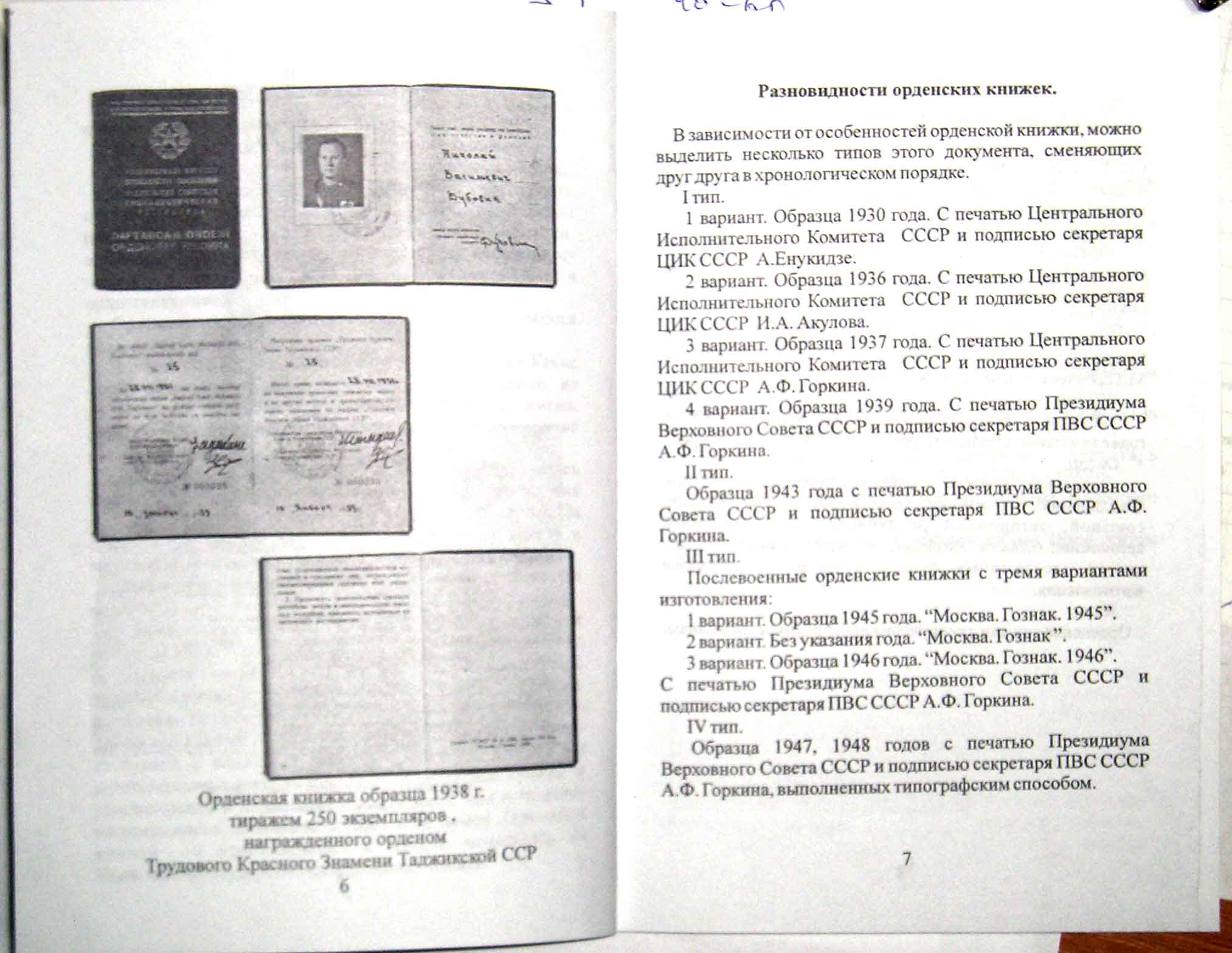 1. Общие орденские книжки и удостоверние к медали к наградам СССР.