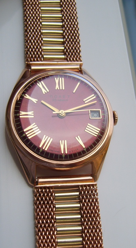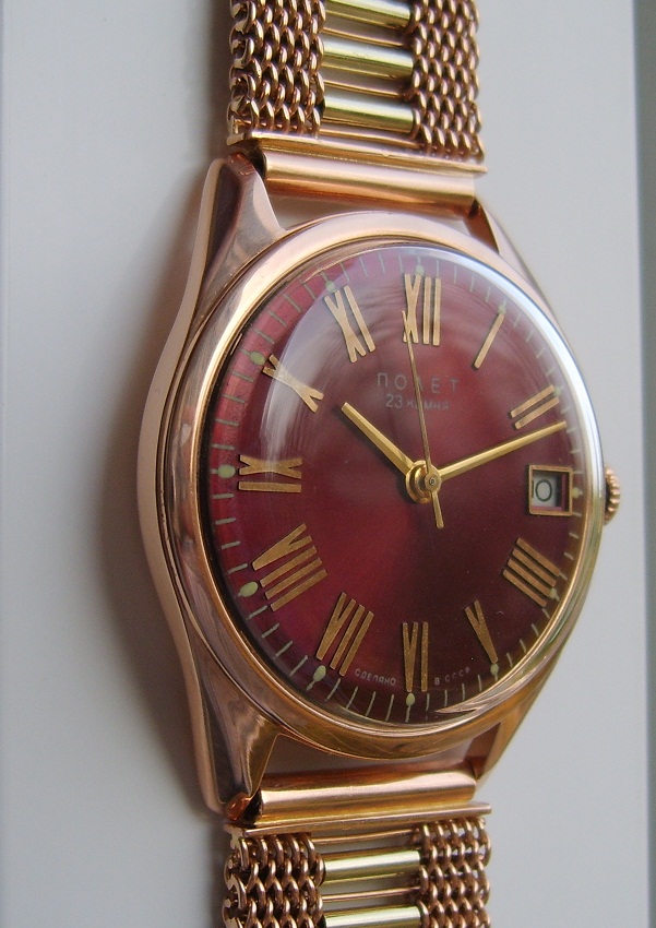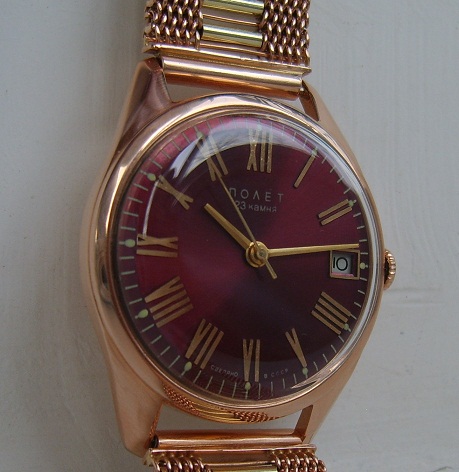 Шикарные золотые часы Полет автомат, на 23 камнях, на золотом браслете.