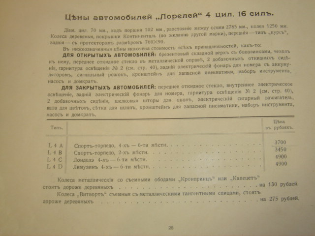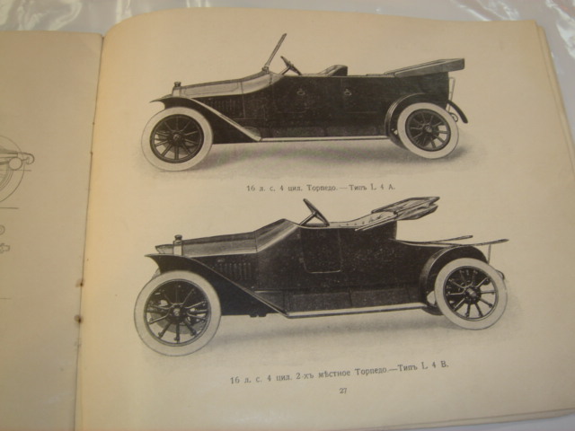Издание 1913 г. Типография Русскаго Товарищества.Содержит информацию о наградах и призах, описание конструкции, прайс цен на автомобили.