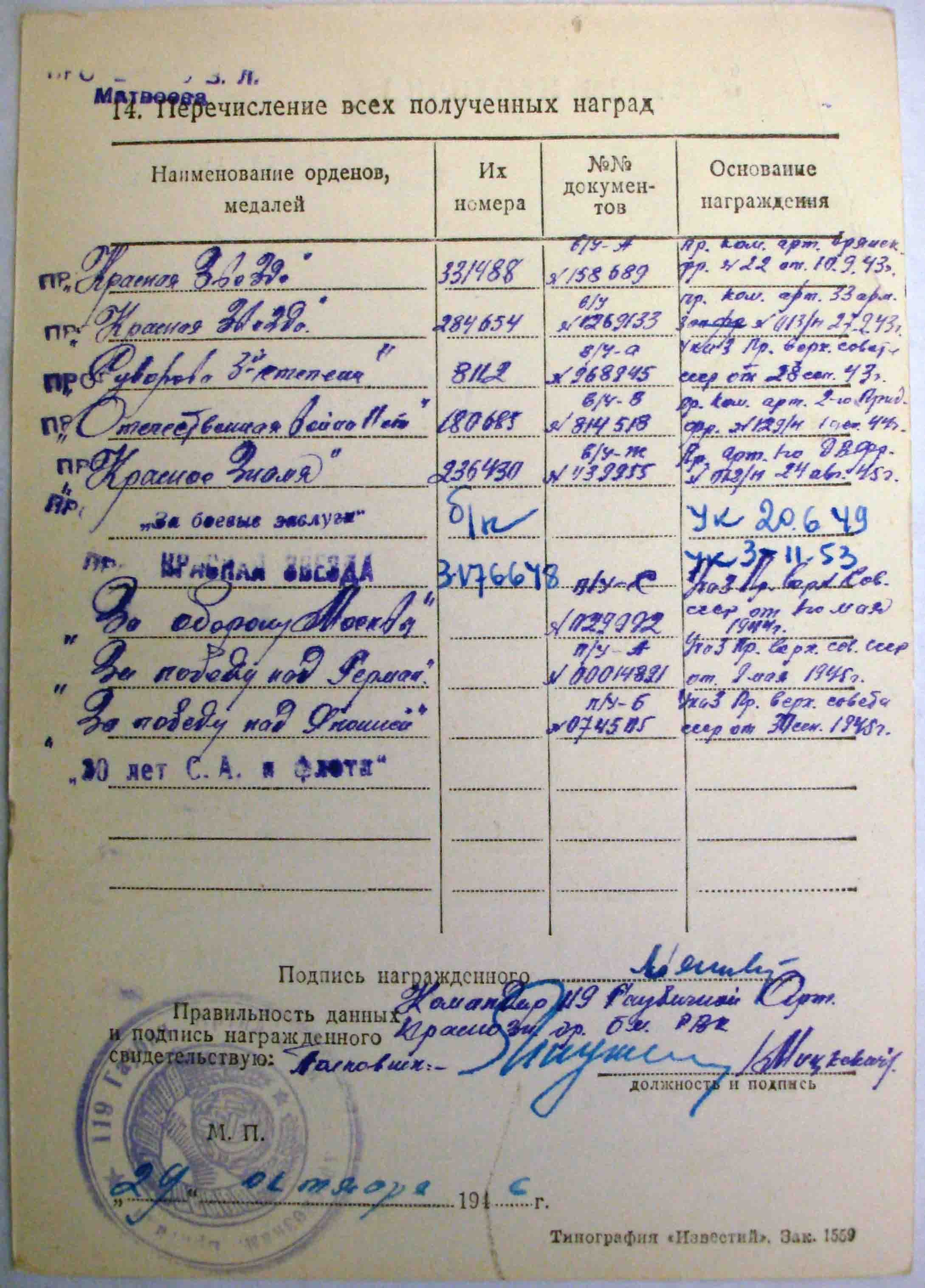 на груди майора помимо этого красовались 3 Красных Звезды, 1 Боевое Знамя и Суворов 3ст