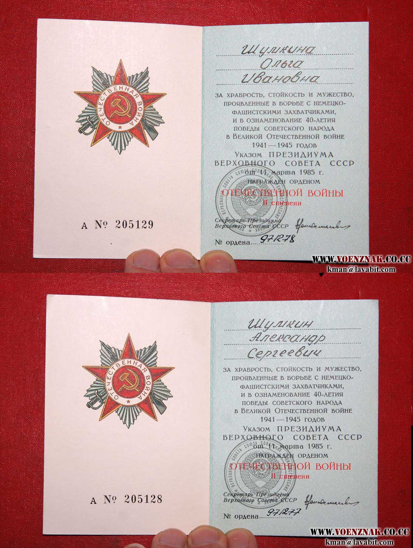 - номера орденских книжек В ПОДРЯД (№ 205128 и № 205129)