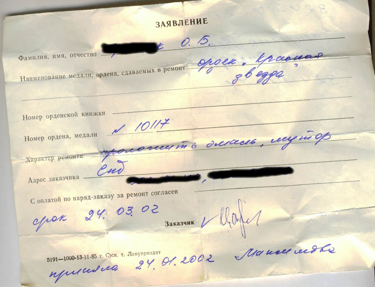 В 2002 звёзда была отреставрирована там же где и была произведена - на Ленинградском монетном дворе - что подтверждено справкой о приёмке на реставрацию.