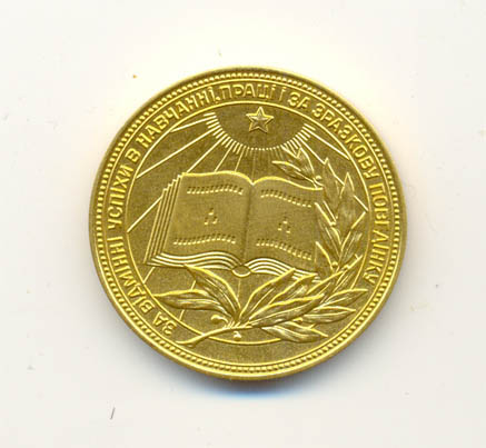 Золотая медаль Украинской ССР образца 1986 года. Герб более округлый, ближе к яйцеобразной форме. На третьем изображении сравнение гербов на медалях 1960 и 1986 годов. По моим наблюдениям данный тип медали проходил менее 10 раз за последние 2 года.