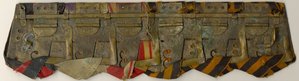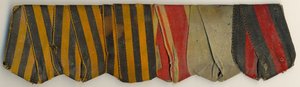 Предлагаю к продаже колодку на 6 награждений с лентами(3 ленты Георгиевские), все старое, колодка находочная. Булавка отсутствует, на колодке, если отогнуть ленточку виднеется клеймо Новиков, круглое(см фото)