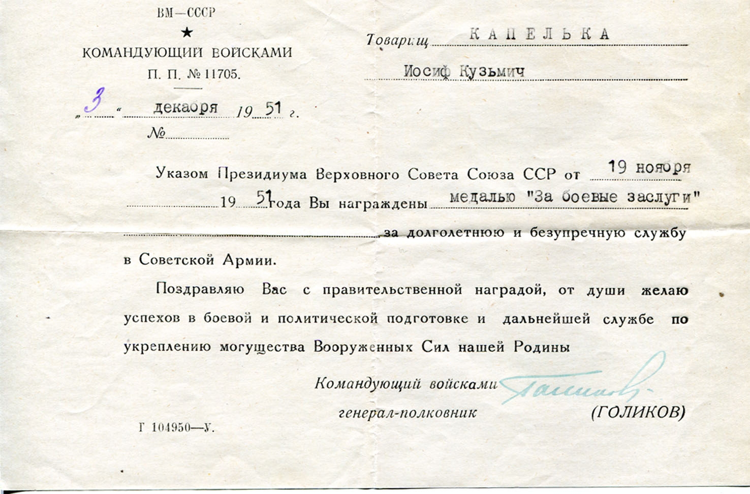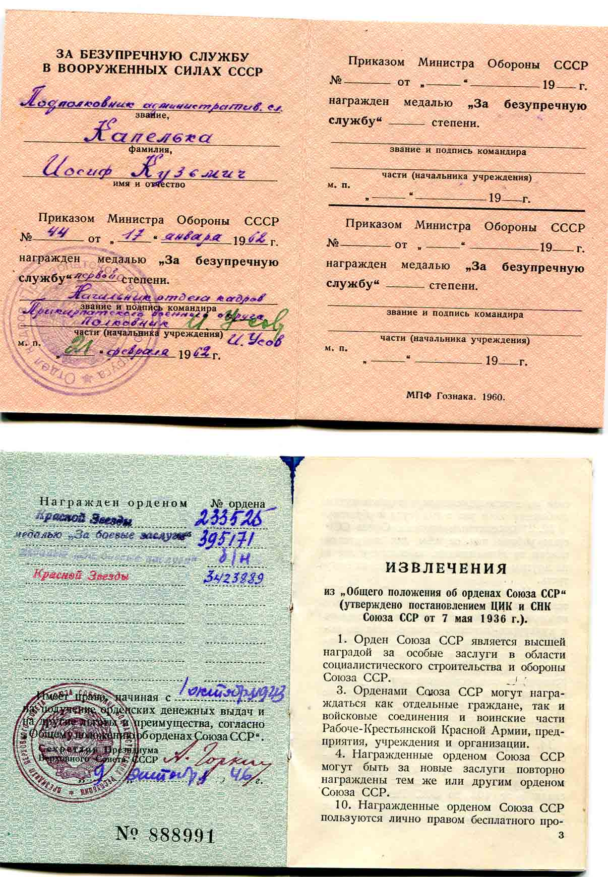 Пяточная звезда с интересным реверсом, на документах очень интересные подписи.