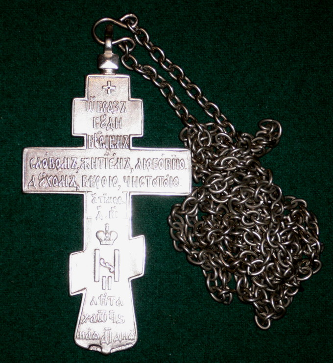 Крест был посуществу заветом Царя Небесного через своего Помазанника, Царя земного, русскому священству, которому предстояло пасти словесных овец стада Христова, лишенных, по своим грехам, земного Православного Царства.