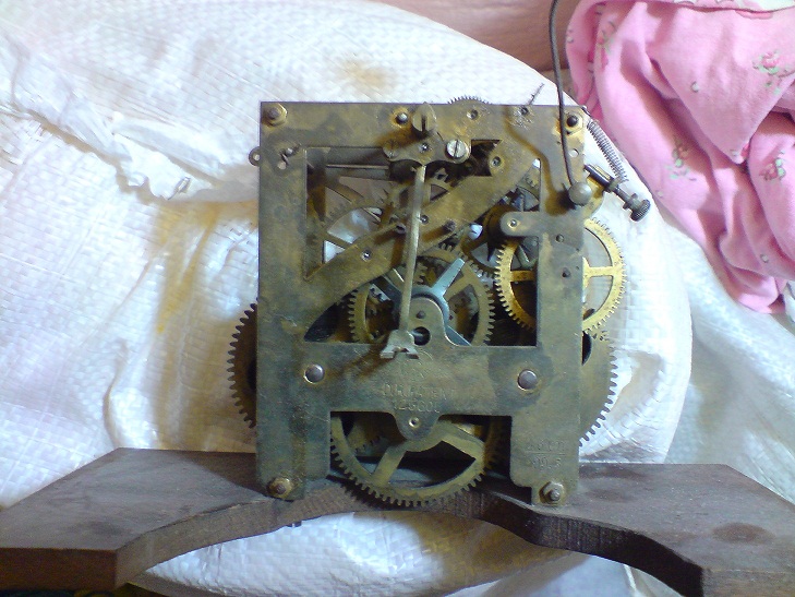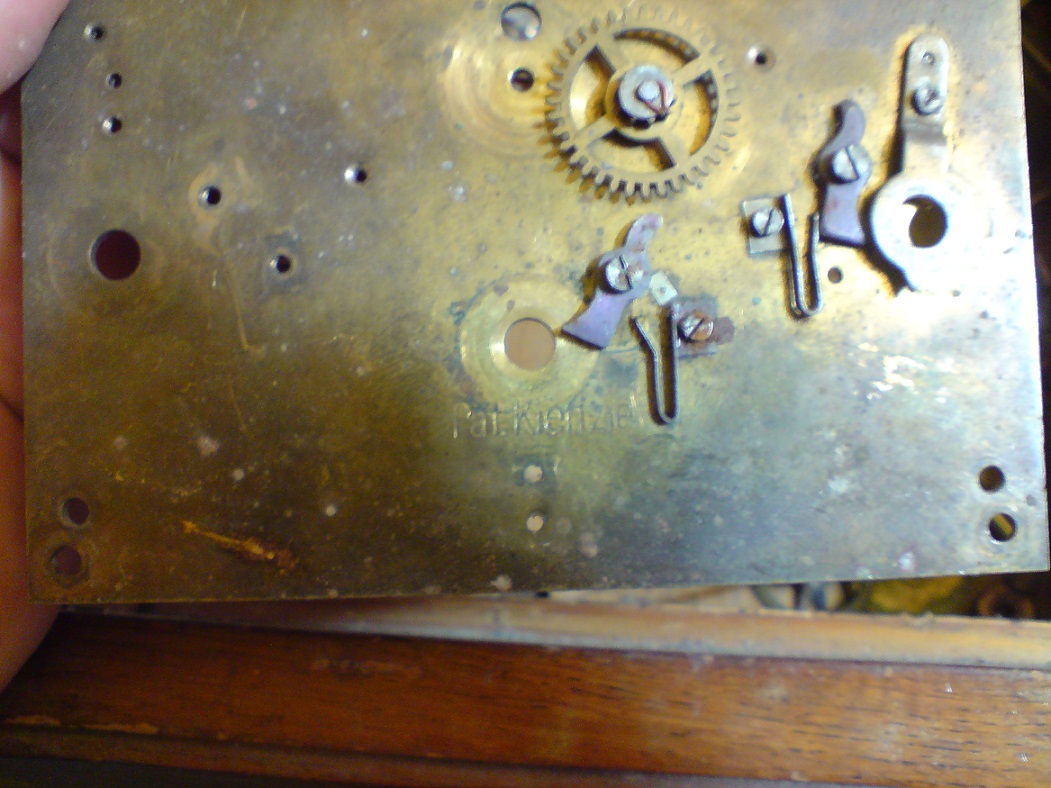 Механизм с четверным боем был жестоко разукомплектован, а именно удалено всё что было связано с боем. То что это Киензли,- я узнал из других источников. Теперь я просто ищу такой же механизм с четверным боем, мечтаю иметь такие часы.
