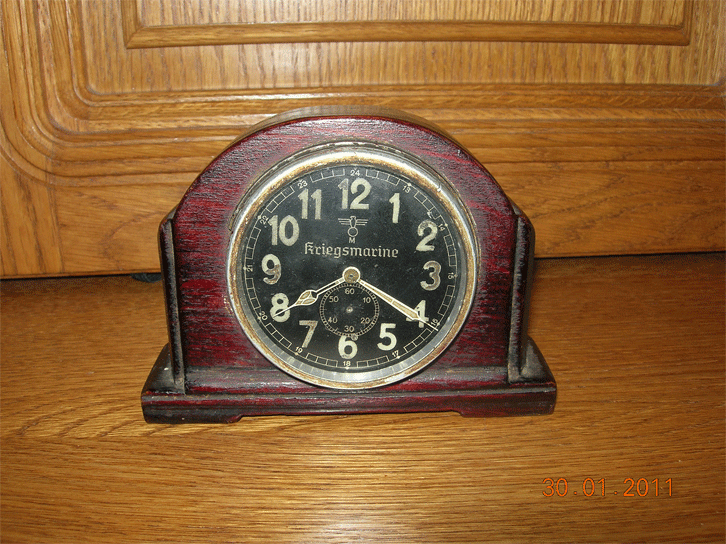 Пришли в таком виде. Свастика закрашена черной краской. Секундной стрелки нет. Тикают, но не долго.