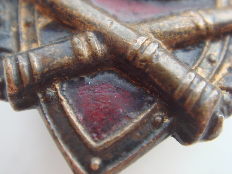 Считаю, что у знака как минимум реставрирована красная эмаль или с ней произошли такие изменения вследствии перепайки винта.