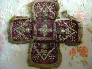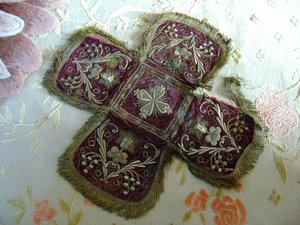 Ветеран писал(а):Это покров для потира, чисто храмовый, богослужебный предмет, к тому же нуждающийся в серьезной реставрации. Вряд ли он нужен дороже, чем 3000 руб.