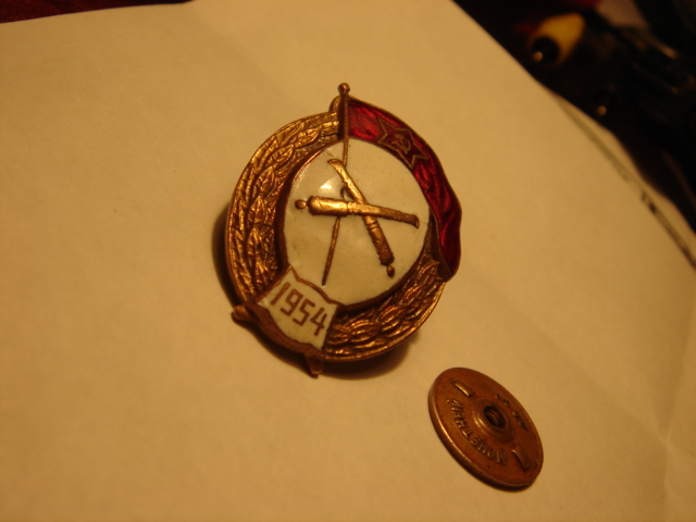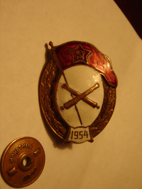 Желудь-артиллерия 1954. С потерями - скол эмали на знамени в углу около древка, и скол белой эмали между пушками. Предложите по РФ.