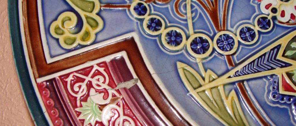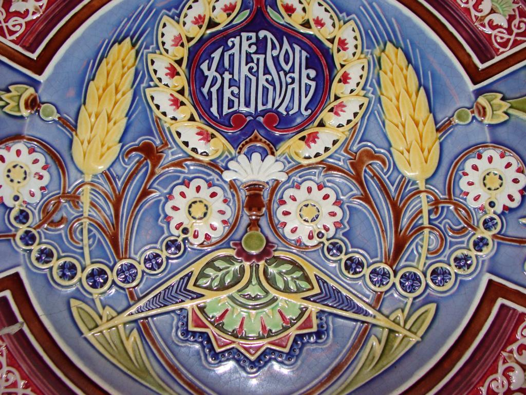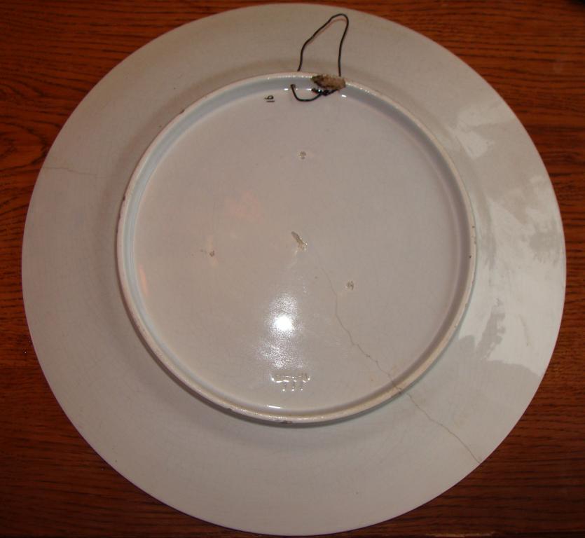 Кузнецовское блюдо "Хлеб-Соль". Диаметр 38,3см. Есть меленький скольчик и трещинка (на фото видно). Без реставрации. По трещине не шатается. Находится в Москве.