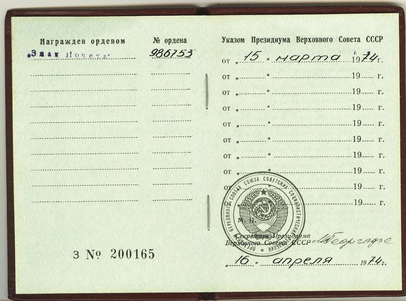В наличии также медали 100 лет со дня рождения Ленина и Ветеран труда, знаки Победителя соцсоревнования 1973, 1974, 1975 г.г. с документами.