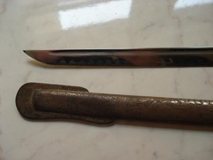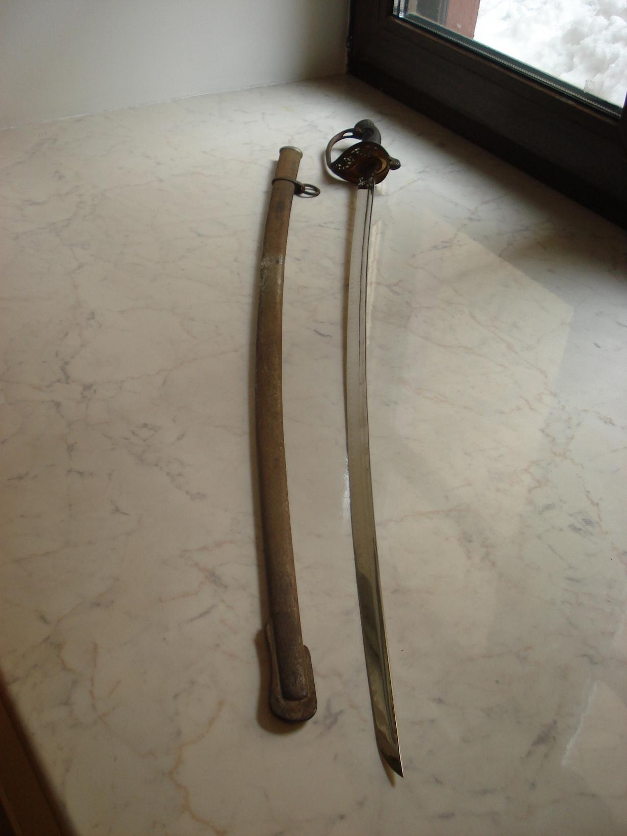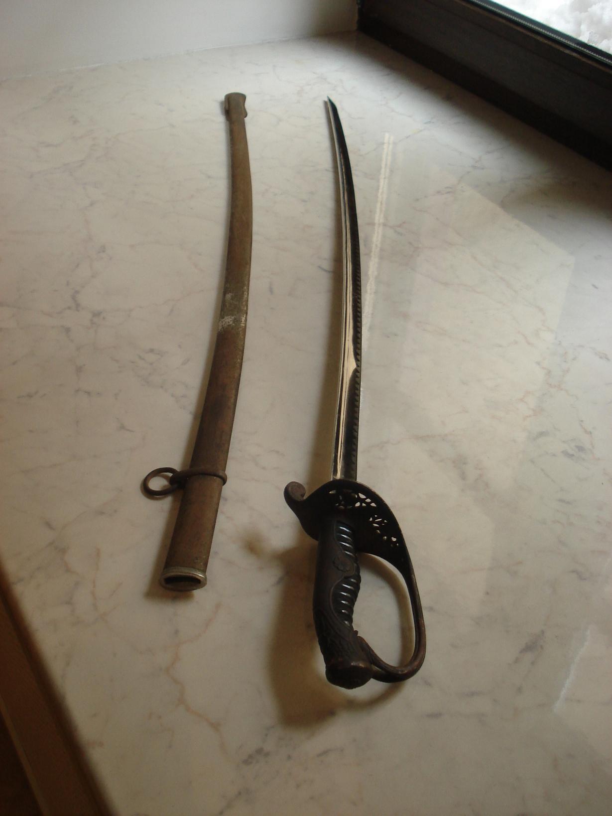 Клинок не точеный. Наведена " пила ". Ножны без вмятин. Клин 78 см.