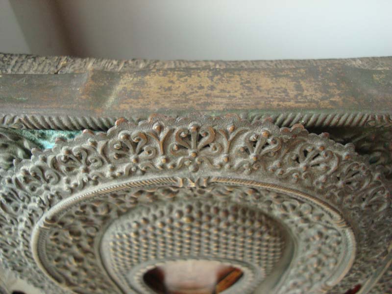 Реставрация по полям и золоту. Вживую намного красивей. Крючки для крепления оклада на одной стороне.