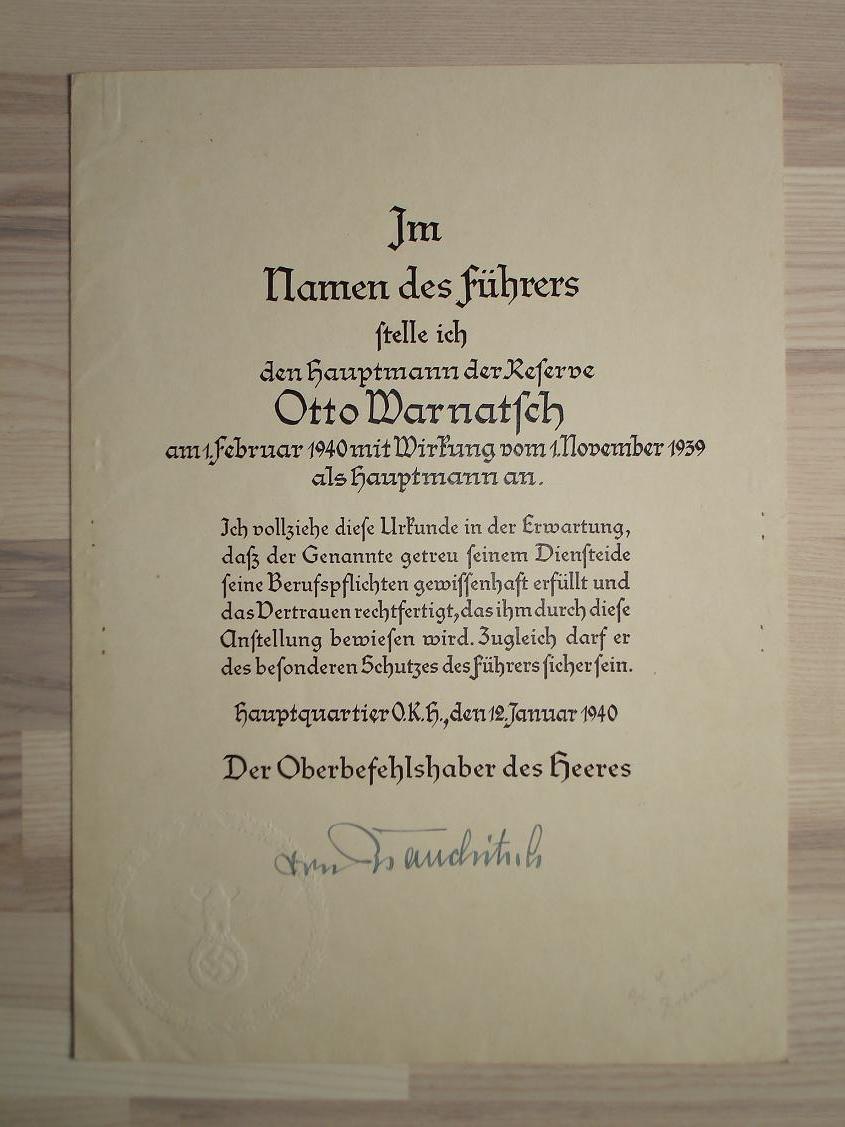 5. Документ о присвоении звания капитана - подписан Генералфельдмаршалом фон Браухич/ Walter von Brauchitsch/ - 12 января 1940г - http://www.hrono.info/biograf/bio_b/brauhich.html
