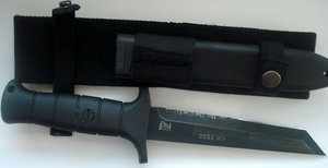 Отдам в хорошие руки бревой нож KM2000 производства немецкой компанией Eickhorn-Solingen Ltd. Принят на вооружение германским Бундесвером. Клинок выполнен в форме «танто», изготовлен из стали 440A (DIN 1.4110). Клинок однолезвийный, с сераторной заточкой нижней части лезвия. Ножны — карбопластик с металлическим устьем. Рукоять KM2000 40 % стекловолокно с полиамидной смолой.